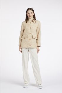 Abrigo corto con manga raglán realizado en un particular tejido en mezcla de lana. El forro es estampado exclusivo de CafèNoir