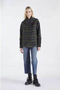 abrigo de cuadros en tejido cálido con mezcla de lana
