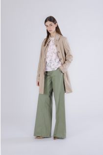 abrigo largo de botonadura sencilla en tejido técnico sand