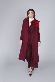 Abrigo largo estilo bata con cinturón y broche decorativo de plumas en la solapa. Elegante y moderno, perfecto para un look casual chic en los meses más fríos. Corte regular. La modelo mide 173 cm y lleva una talla pequeña.