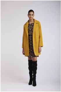 abrigo oversized de doble botonadura de tejido bouclé ocra
