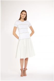 Atemporal y delicada la falda de vuelo en tejido de algodón con cinturón. Disponible en una amplia paleta de colores lisos.