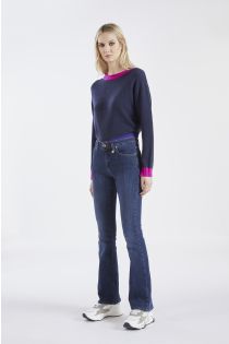 Pantalones básicos modelo acampanado de tela denim superstretch.