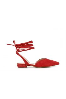 Bailarinas de ante con cordones tipo esclava con punta afilada. Tacón bajo forrado del mismo material que la pala