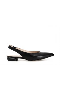 Bailarinas de napa abiertas por detrás con punta afilada. Tacón bajo forrado del mismo material que la pala