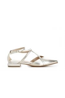 bailarinas de napa laminada con lazo en el tobillo bone / platinum