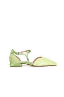 Bailarinas de piel de ante con tira asimétrica en el tobillo en efecto laminado. tacón forrado de piel laminada de 15 mm de altura.