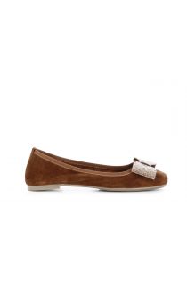bailarinas en piel de ante monocolor con lazo lleno de pedrería tan