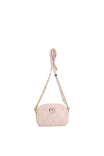 bandolera con acolchado de rombos con aplicación de remaches y logo bicolor powder
