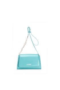 bandolera con solapa efecto charol con detalle de cadena y logotipo charms aquamarine