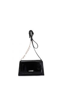 bandolera con solapa efecto charol con detalle de cadena y logotipo charms black