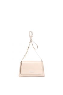 bandolera con solapa efecto charol con detalle de cadena y logotipo charms powder