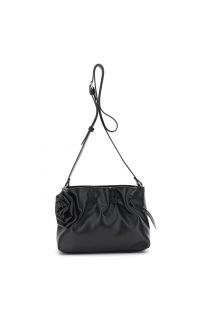 bandolera suave con pliegues efecto napa y aplique a juego. black