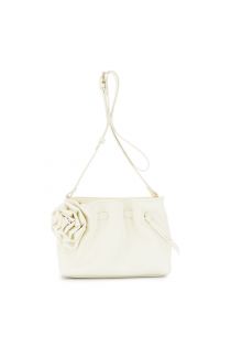 bandolera suave con pliegues efecto napa y aplique a juego. ivory