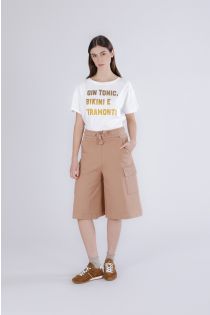 bermudas de forro polar con bolsillos y apliques caramel
