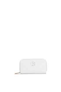 billetera con doble cremallera redonda y logotipo en relieve en toda la superficie white