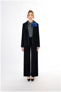 Cómoda blazer sin forro y sin botones confeccionada en terciopelo texturizado con un elegante efecto tornasol. prenda atemporal que desprende elegancia y estilo.