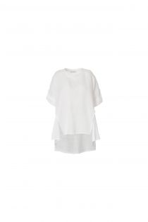 Blusa práctica, fresca y versátil de longitud asimétrica entre parte delantera y trasera
