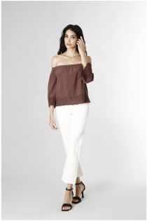 Blusa de algodón con bordados en el bajo y las mangas. importante escote barco.