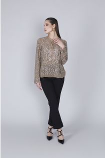 blusa con bordado de pedrería multibeige