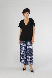 Blusa de manga corta y escote en "v" confeccionada en viscosa marroquí. ajuste cómodo. perfecto para combinar con un par de jeans.