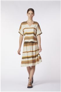 blusa con manga tipo kimono en mezcla de lino estampado shaded line