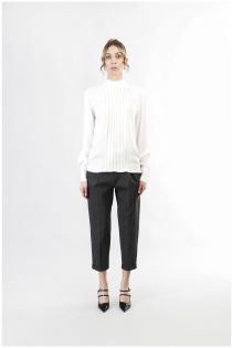 blusa con pliegues en la parte delantera y fajín en el cuello. butter