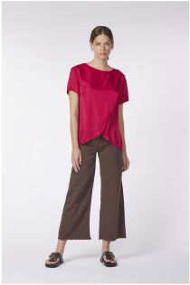 blusa cruzada de manga corta en lino y viscosa cyclamen