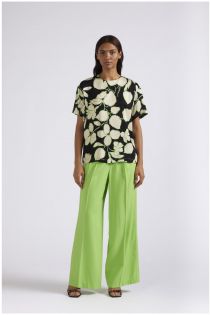 blusa de manga corta de satén de viscosa estampado maxy black flower