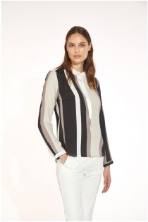 Blusa confeccionada en marocain de viscosa estampado caracterizada por un amplio escote bordado en contraste de color. Mangas largas con ligero frunce en el bajo.