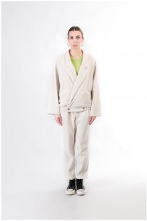 Blusa oversize con botonadura cruzada en el bajo. confeccionado en terciopelo de roca. elegante broche de flores aplicado en la solapa. para combinar con pantalón del mismo tejido.