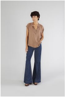 blusa oversize bimateria sin mangas cocoa