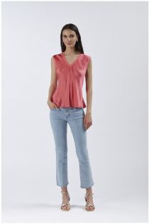 Blusa sin mangas con escote confeccionada en satén de viscosa. escote de pico. informal y al mismo tiempo refinada esta blusa es perfecta para cualquier ocasión combinada con los accesorios adecuados.