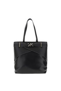 Bolso de compras de piel sintética con diseño geométrico, una trabilla decorativa y un accesorio metálico. Práctico y espacioso, perfecto para cualquier ocasión.