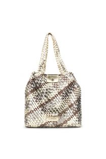 bolsa de compras tejida reversible en material metalizado multicolor bronze/platinum