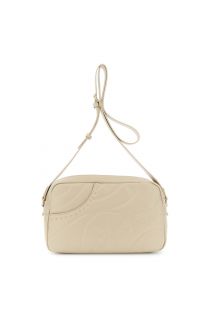 Bolso para cámara de piel sintética con relleno acolchado con efecto ondulado, remaches decorativos y correa de hombro ajustable para un uso práctico y versátil.