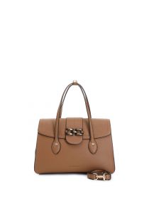 bolsa shopping con solapa, aplicación pinza pintada brown