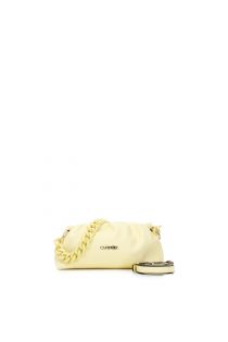 Bolso de forma alargada con pliegues suaves abrible con cremallera a presión con bandolera para llevar al hombro.