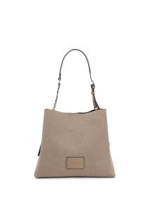 bolso bandolera efecto ante con letras grandes en la bandolera taupe
