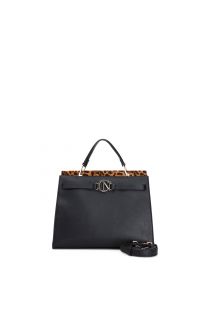 Bolso baúl con división de material en contraste y cinturón con accesorio CafèNoir en el cuadrante delantero