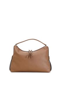 Bolso baúl con maxicremallera y borlas deshilachadas. Incluye bandolera