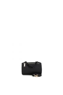 Bolso baúl pequeño en material de efecto mate con cierre de cremallera logotipo de alta frecuencia cadena de plástico para llevar en la mano y correa opcional para el hombro.