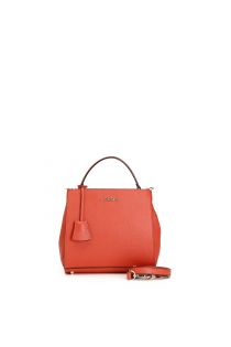 Bolso baúl pequeño semirrígido de piel con accesorio y bandolera opcional.