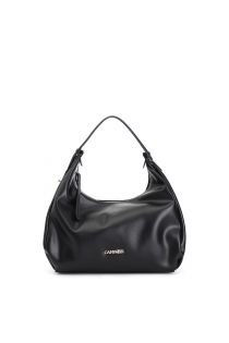 Bolso con accesorio de cierre en el asa. compartimento único y bolsillo interno con cremallera. cierre de cremallera.
