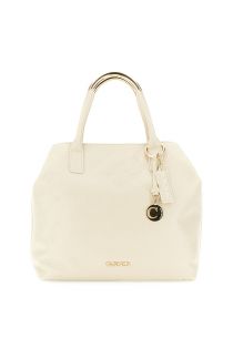bolso con asas tubulares y accesorio metálico taupe