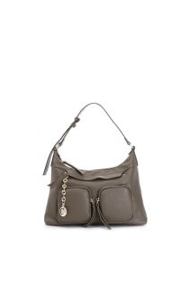 Bolso con bolsillos delanteros y charm metálico personalizado. compartimento único y bolsillo interno con cremallera. cierre de cremallera.