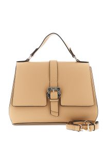 Bolso de mano de piel sintética con solapa y hebilla joya, nervaduras en contraste, divisiones internas, bolsillo trasero y correa de hombro extraíble para una versatilidad elegante.