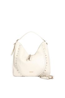 bolso con piedras cabujón, mini remaches, asa acolchada y bandolera ivory