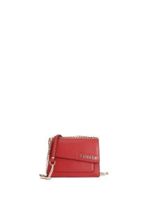 Bolso bandolera con solapa asimétrica y letras metálicas bandolera de cadena de doble largo bolsillo frontal de parche y bandolera acolchada para máxima comodidad.