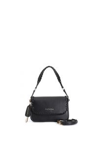 bolso con solapa con enhebrado, asa trenzada, colgante de helado y bandolera black